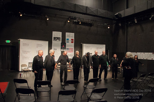 The cast of The Normal Heart stands on stage just before the performance begins. The staged reading completed the four-day arts festival, which acknowledged and commemorated those lost to AIDS on Vashon Island WA. Courtesy of Peter Serko